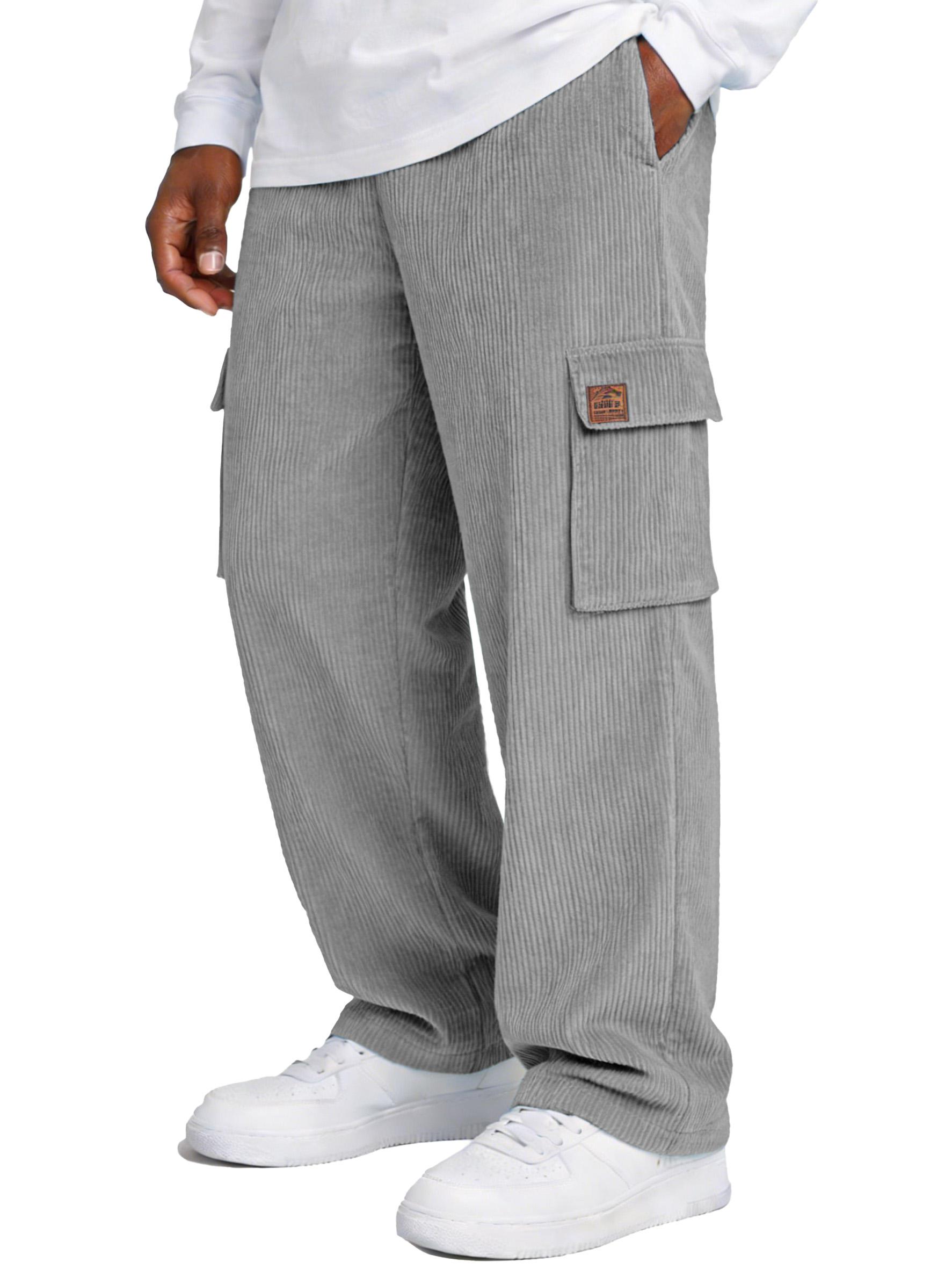 Men's Stylish Corduroy Vintage Multi-pocket Cargo Pants with Embroidered Patchwork