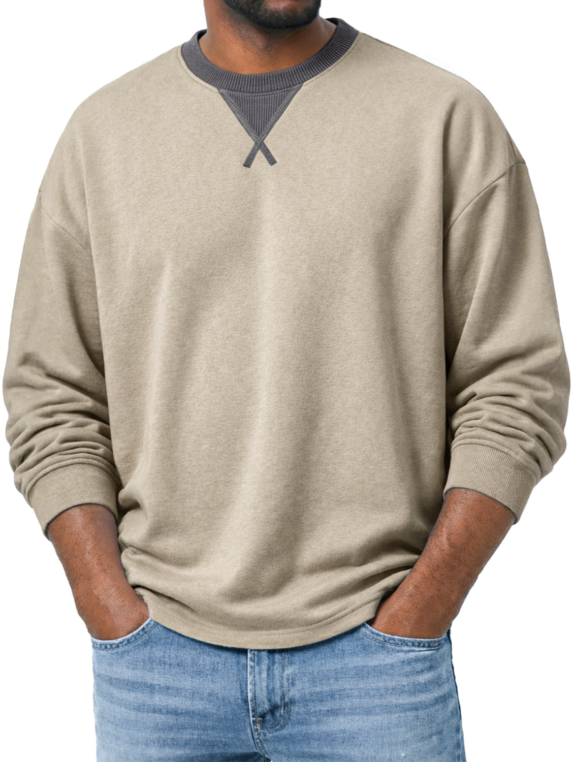 Men's Crew Neck Long-sleeved T-shirt With A Crossover Design, Casual And Comfortable