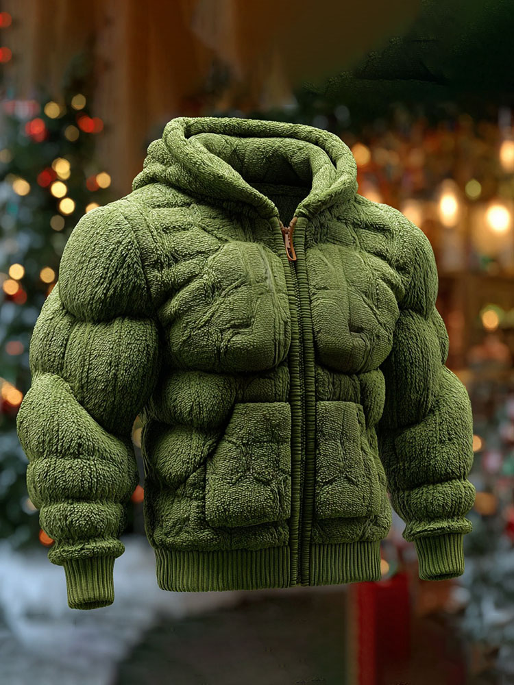 Herren Weihnachtszeit Grüner Muskel Kunst Gemütlicher Strickpullover