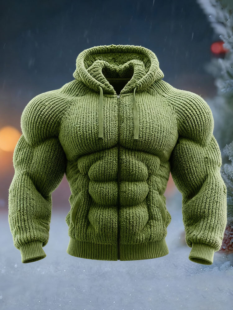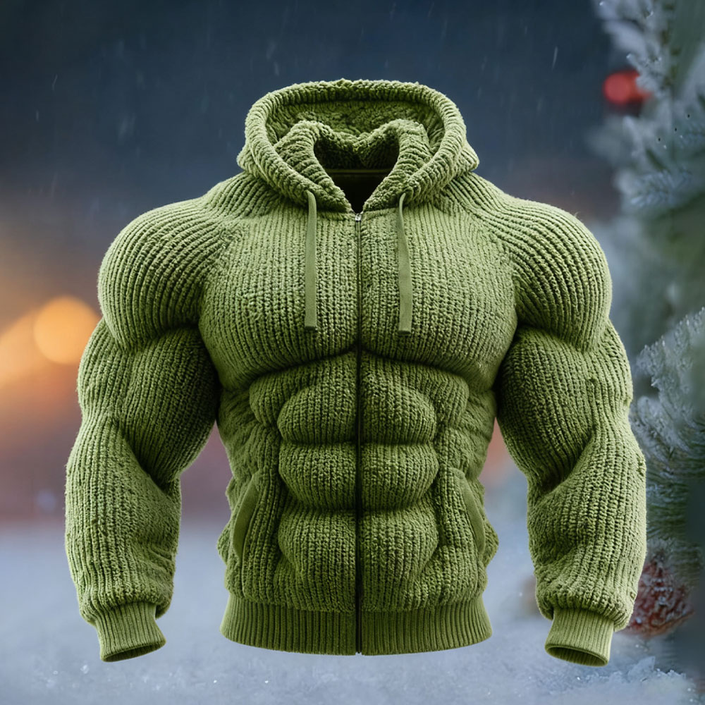 Herren Vintage Muskel Linie Kunst Warm Kapuzenstrickjacke