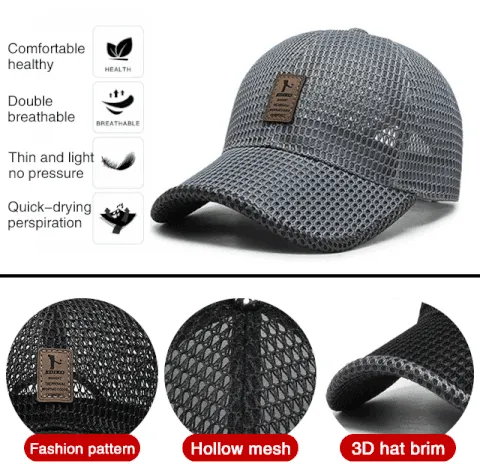 - Atmungsaktiv kühl: weiches Mesh-Panel, bessere Belüftung, um Sie trocken und bequem zu halten. Verwenden Sie große und langlebige Mesh-Lüftungsöffnungen, um Kopfhitze zu vermeiden.