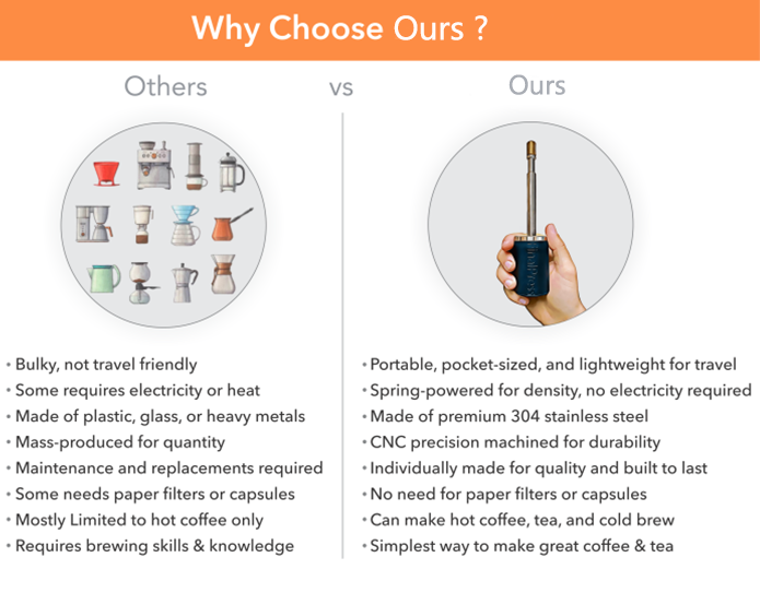 It is easy to carry with you wherever you go, you can brew delicious coffee and tea on the go with ease.