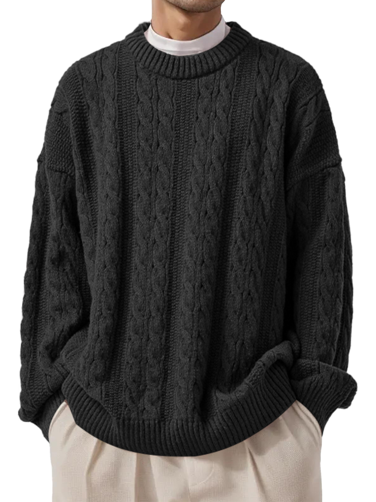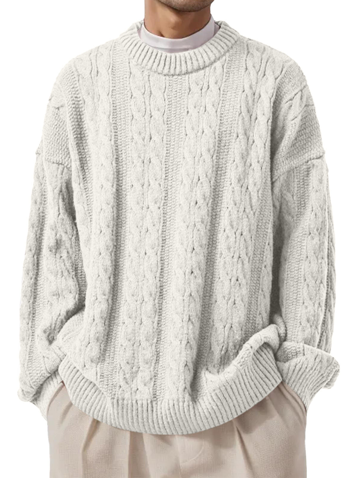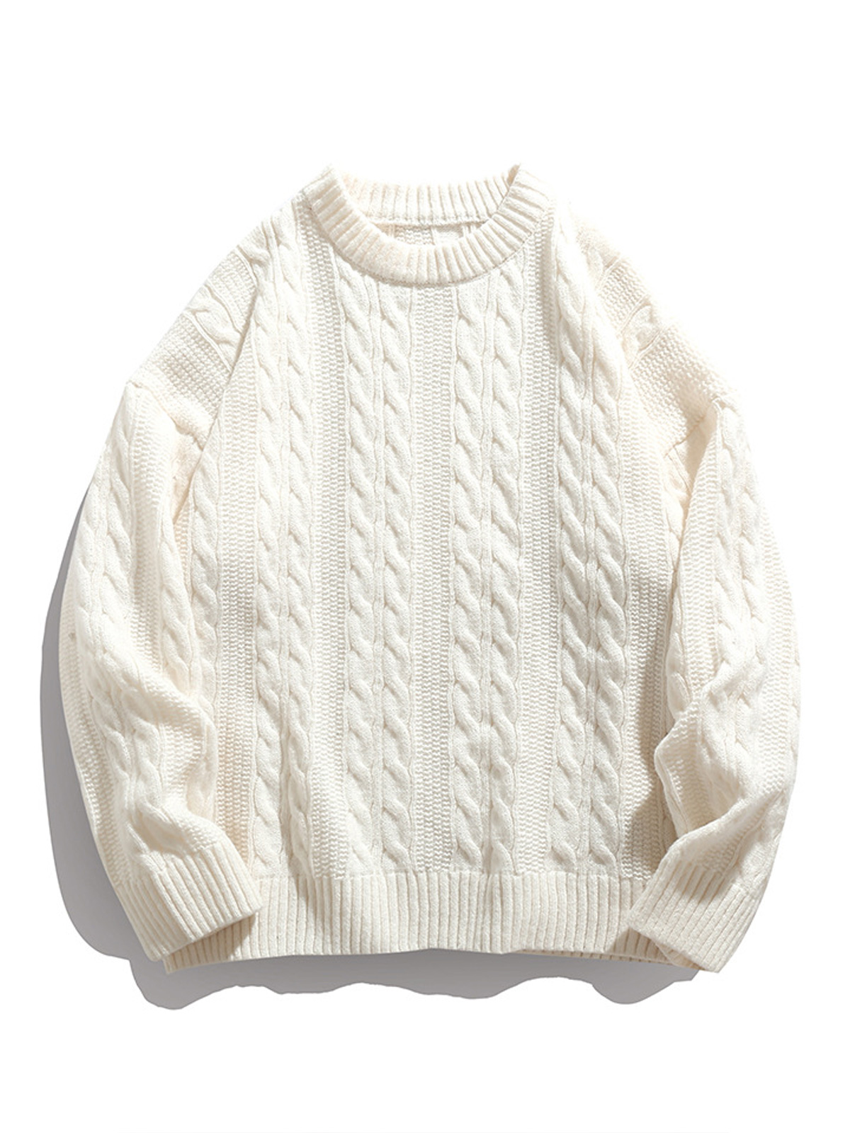 Men's Casual Round Neck Jacquard Solid Color Comfortable Knitted Sweater