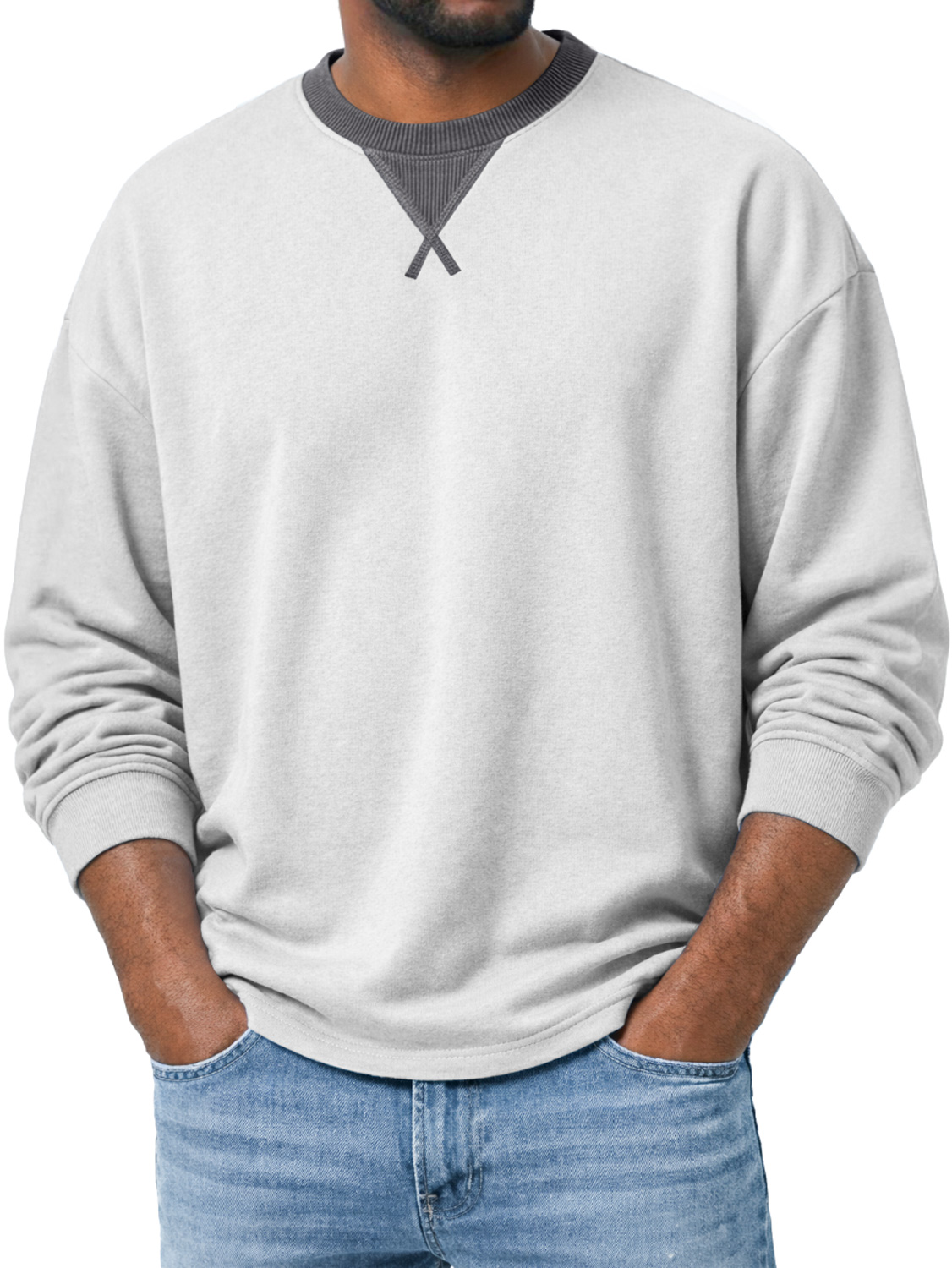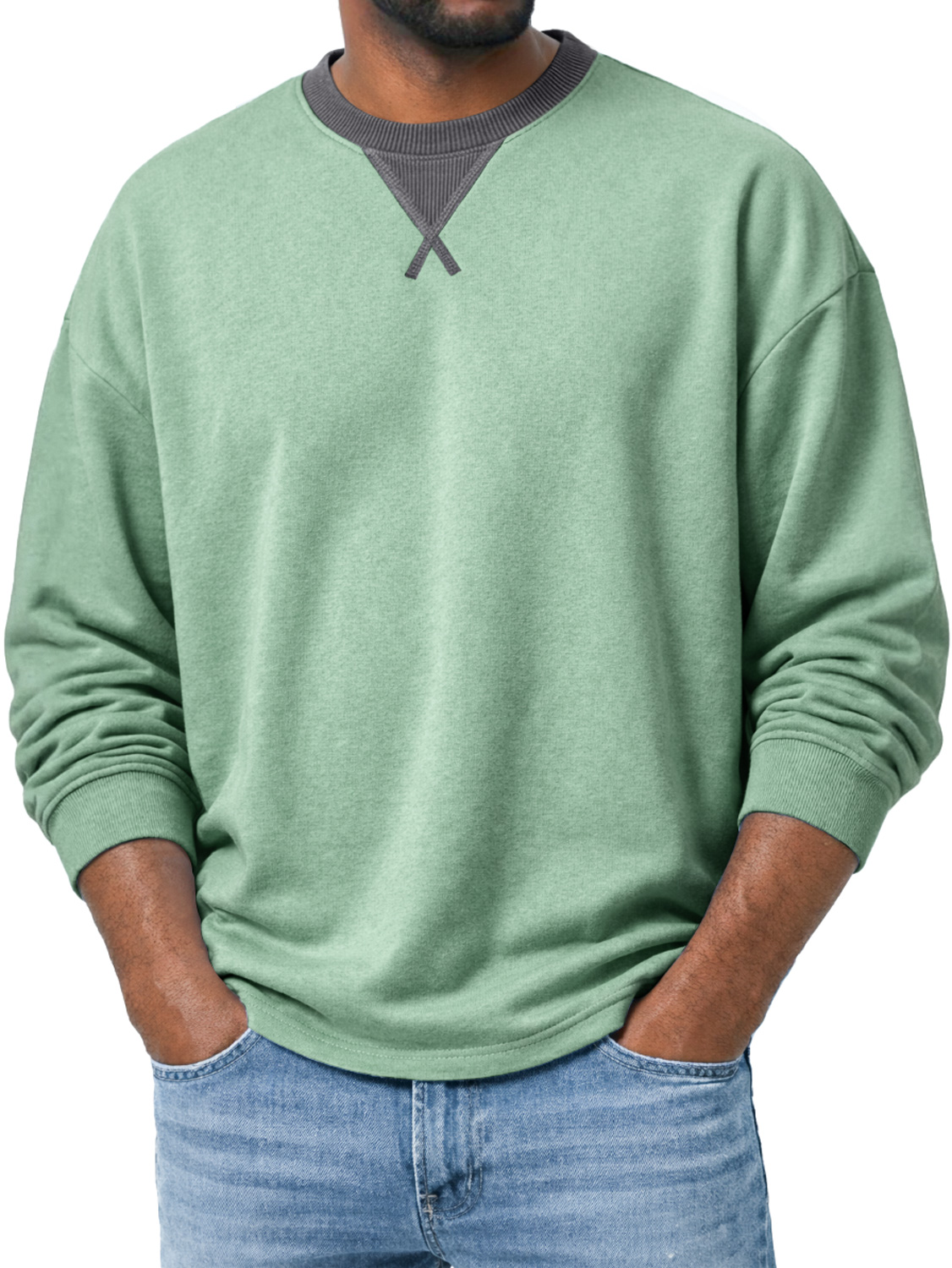 Men's Crew Neck Long-sleeved T-shirt With A Crossover Design, Casual And Comfortable