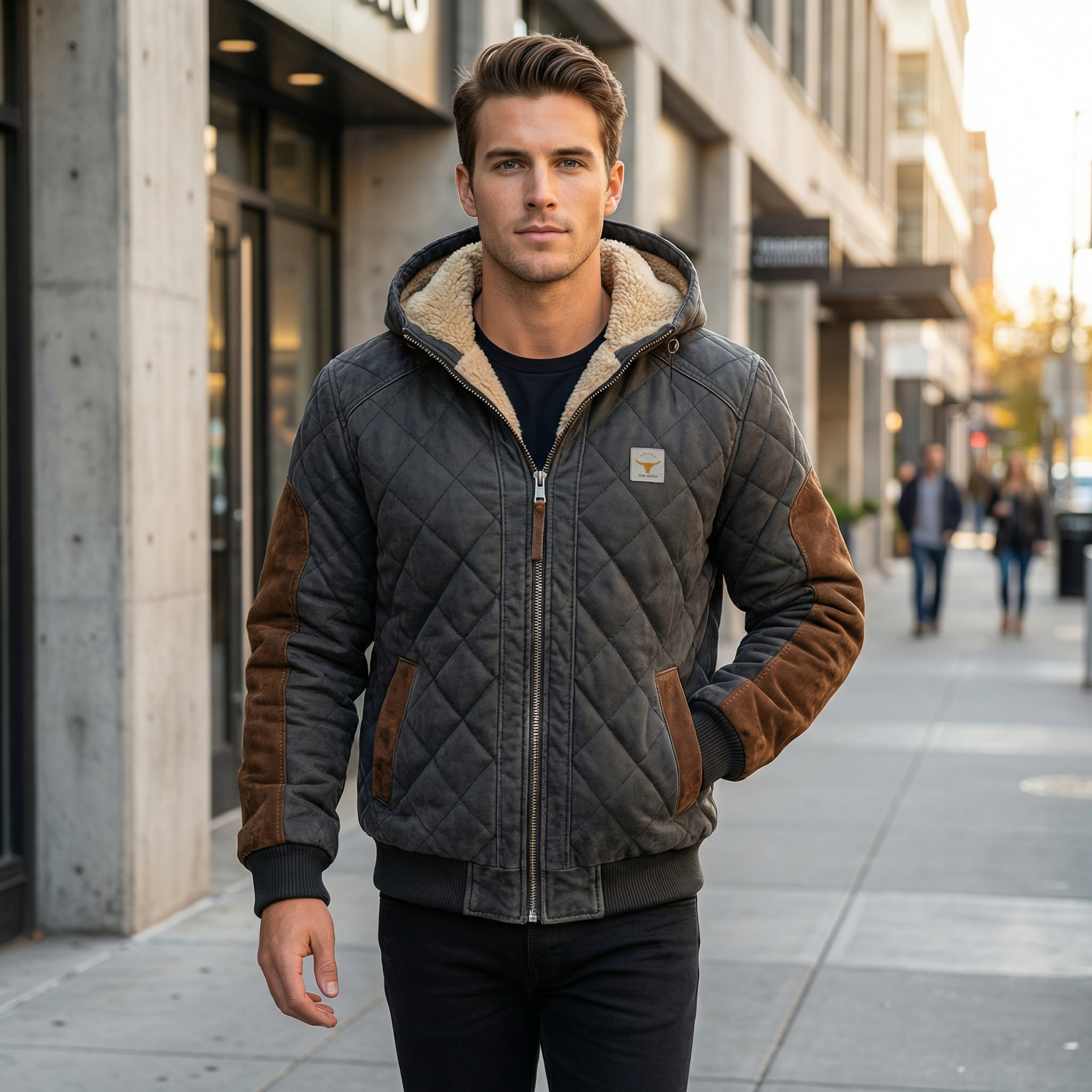The standout feature of this jacket is its unique quilted patchwork pattern, adding depth and character to your look. It brings a vintage vibe that’s both rugged and refined — perfect for those who want a jacket with personality.