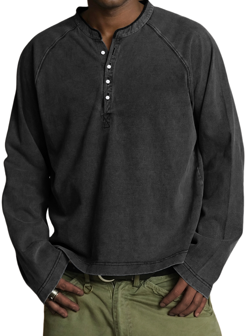 Men's Vintage Washed Cotton Henley Long-Sleeve T-Shirt