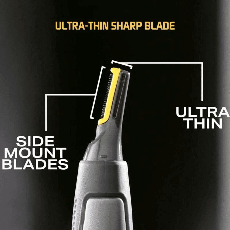 The all new micro-precision trimmer has an ultra-thin head with a perfectly-angled, side-mounted blades, that goes beyond where clippers and scissors can.
